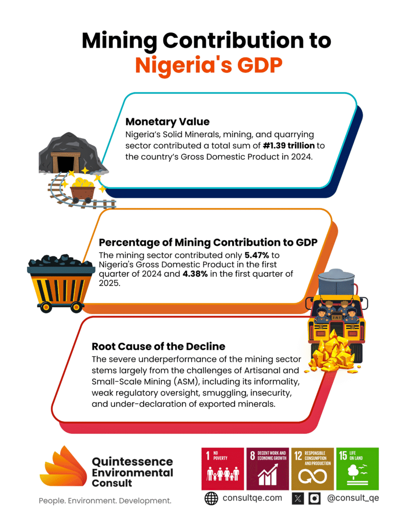 2. Despite Nigeria’s vast mineral wealth, mining contributed only 4.38% to GDP in Q1 2025, down from 5.47% in 2024, due to ASM’s informality and weak oversight.